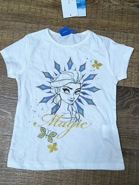 104-es fehér póló kék és arany mintával - Jégvarázs - Frozen - ÚJ