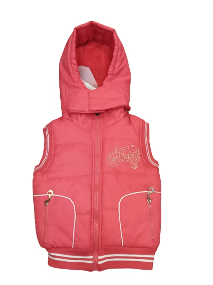 116-os pirosas feliratos szőrme bélésű lány mellény - ÚJ
