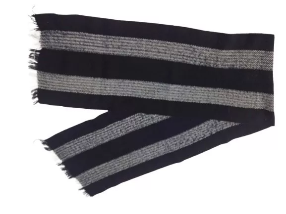 145 cm hosszú fekete-fehér csíkos téli kötött sál