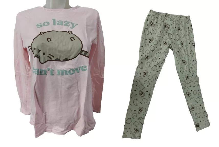 158-164-es rózsaszín-mentazöld cicás pizsama - Reserved