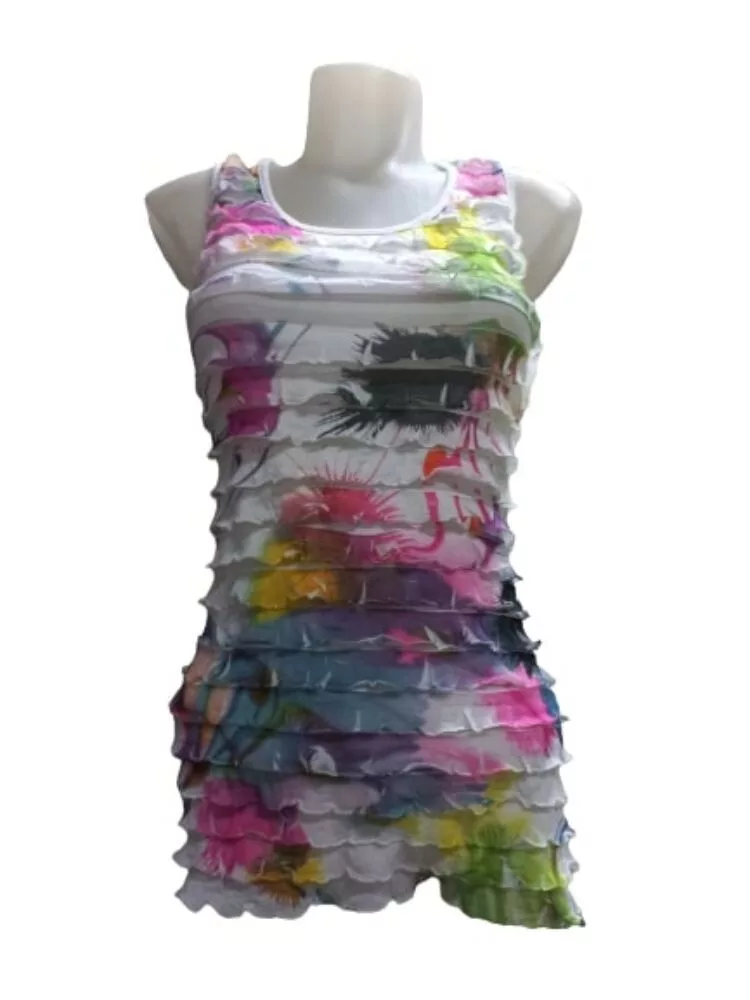 158-as fehér fodros ujjalan virágos póló - Kylie
