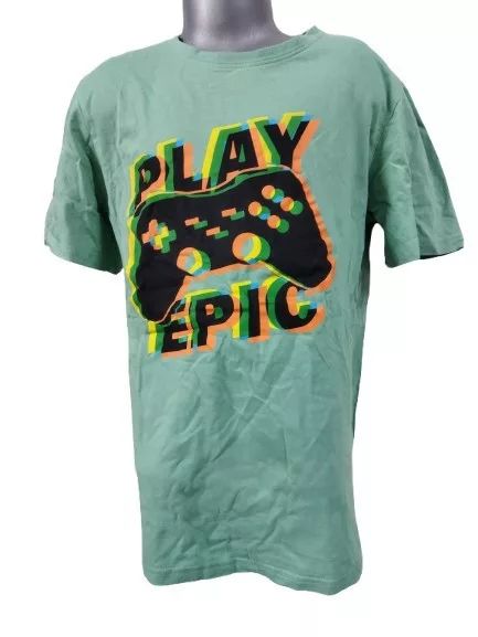 164-es zöld feliratos, játékkonzolos, gamer póló - H&M