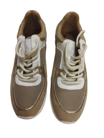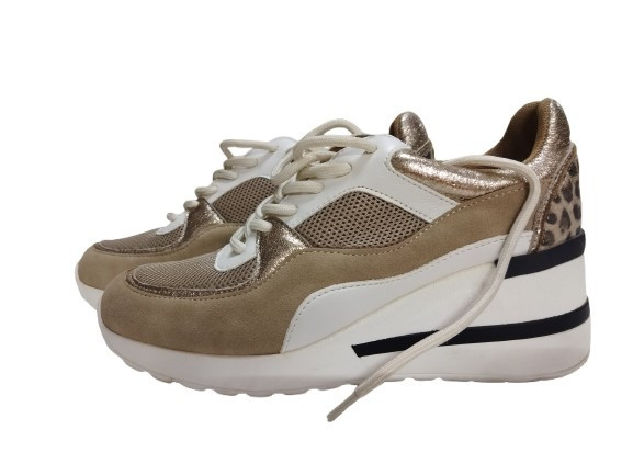 36-os drapp-arany párcucmintás emelt sarkú fűzős félcipő - Graceland