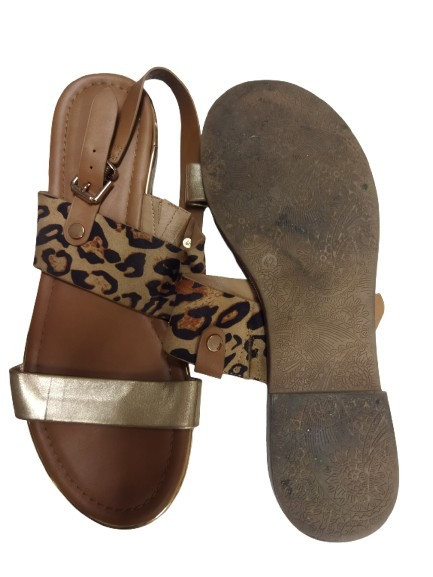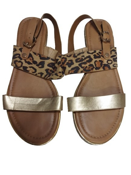 42-es párducmintás-arany lapos sarkú szandál, saru - Catwalk