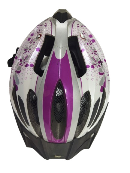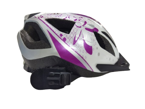49-54 cm-es fejre fehér-lila biciklis, kerékpáros világító, állítható bukósisak