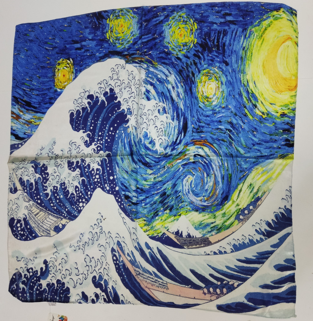 A festményes minta egyedi és lenyűgöző megjelenést kölcsönöz a sálnak. A gazdag színek és a finom részletek gondosan kidolgozott festményként jelennek meg a sálon, amelyek egyedi stílust adnak viselőjének.