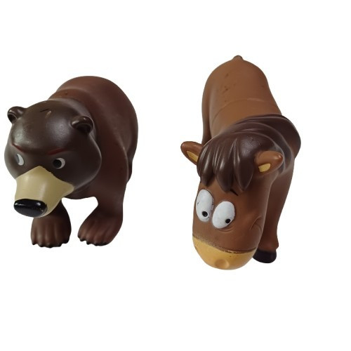 Barna műanyag medve és ló figura, 2 db egyben