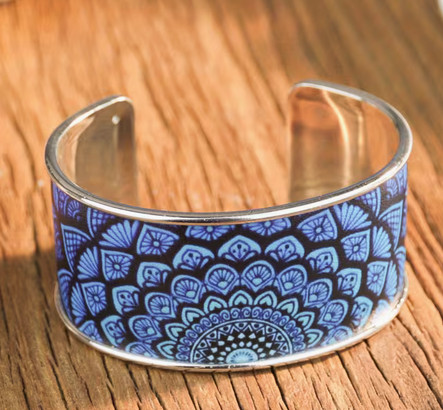 Bohém kék mandalamintás karkötő, karperec - ÚJ
