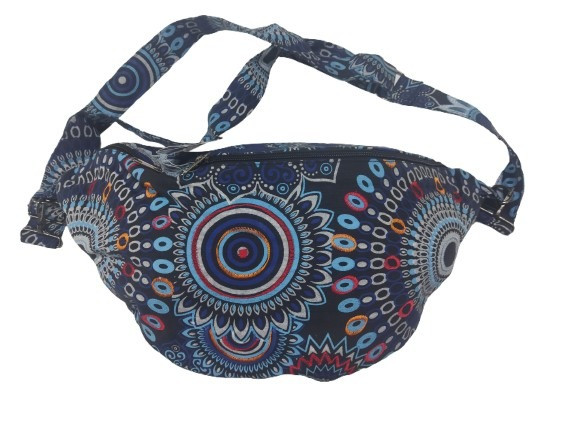 Bohém mintás kék nepáli hímzett nagyméretű vászon övtáska, vagy oldaltáska - ÚJ