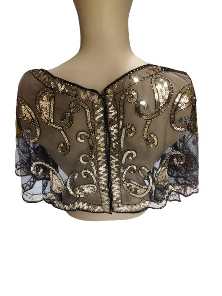 Fekete-arany fliiteres török mintás csipkegallér, gallér, charleston jelmezkiegészítő - ÚJ