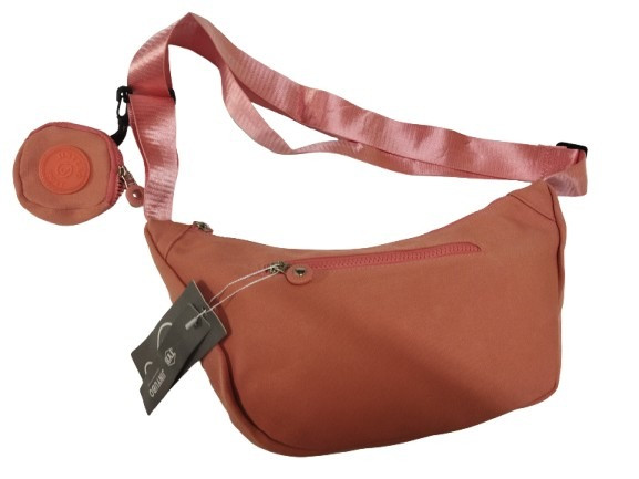 Korallszínű nagyméretű gyöngyvászon övtáska kis pénztárcával - ÚJ