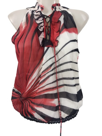 Női L-XL-es piros-fekete ujjatlan blúz - Res Queen - ÚJ