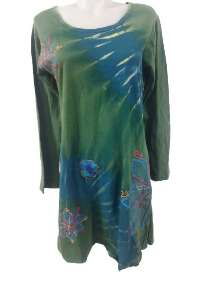 Női L-XL-es zöld virágos bohém pamut ruha - Nini - ÚJ