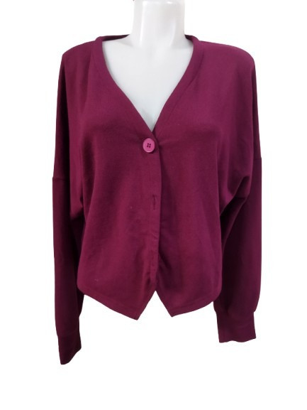 Női L-es bordó finomkötött rövid állasú kardigán (kicsit foltos)