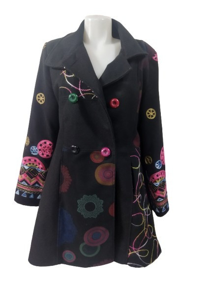 Női L-es fekete hímzett mintás olasz szövetkabát