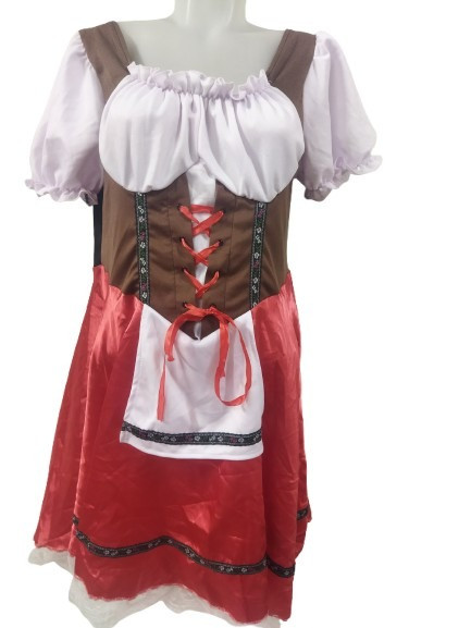 Női L-es piros-barna kötényes jelmezruha, osztrák, bajor népviselet - Smiffy's
