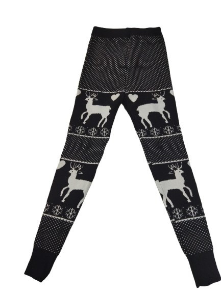 Női M-L-es fekete rénszarvasos-hópelyhes kötött leggings - ÚJ