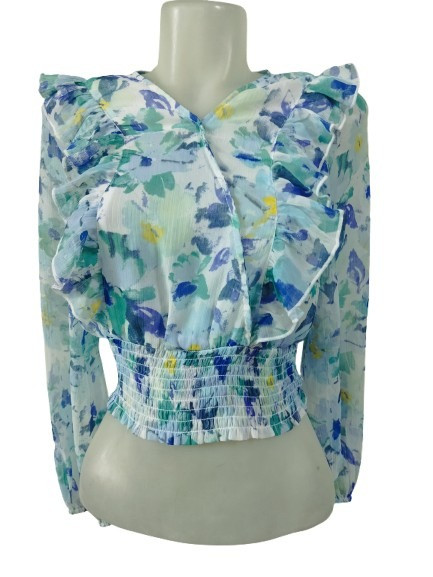 Női S-es kék virágos lenge blúz, rövid állású - Stradivarius