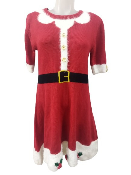 Női S-es piros kapucnis kötött télapó, mikulás ruha - Primark