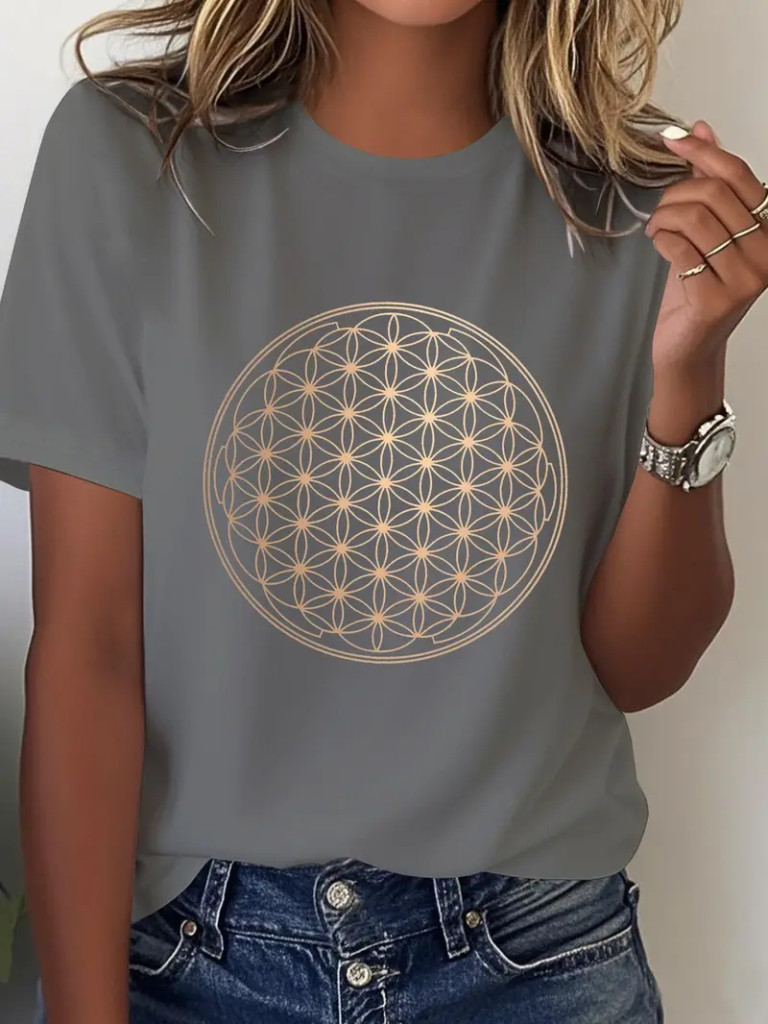Női S-es szürke pamut élet virága mintás póló - ÚJ