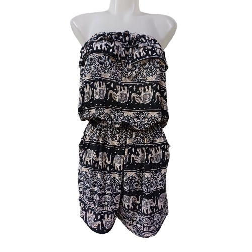 Női XL-XXL-es fekete elefántos rövid playsuit
