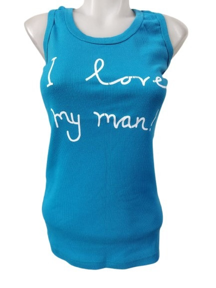 Női XL-XXL-es kék ujjatlan feliratos bordás póló