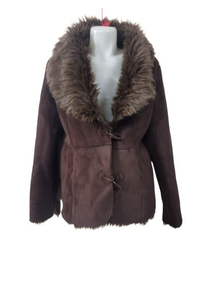 Női XL-es (42-es) barna hasíottbőr jellegű szőrmés kisbunda, rövid kabát - BHS