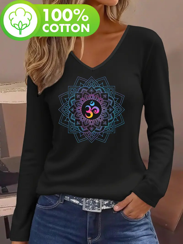 Női XL-es fekete mandalás pamutfelső - ÚJ