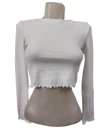 Női XS-es fehér hosszú ujjú, bordás anyagú top - FB Sister