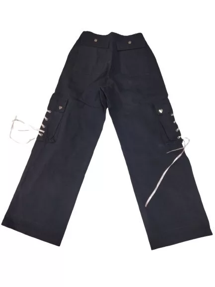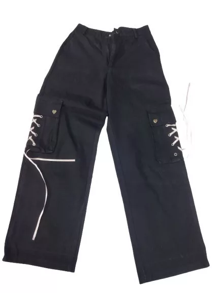 Női XS-es fekete fűzős lábszárú magasított derekú, bőszárú farmernadrág