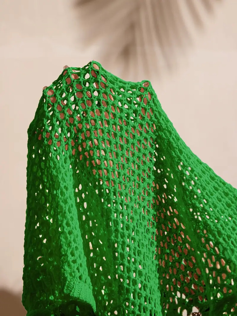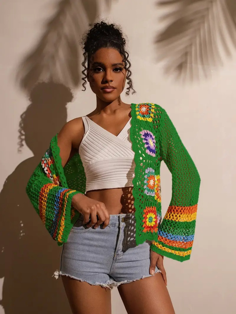 Női XXL-es zöld, színes mintájú, horgolt kardigán - ÚJ