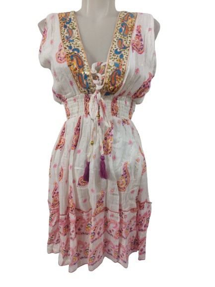 Női egyméretes fehér-pink arany flitteres nepáli, indiai ruha - Boho Alta Moda - ÚJ