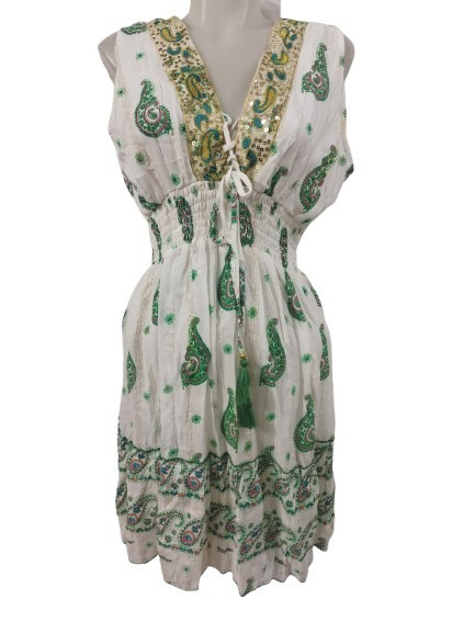 Női egyméretes fehér-zöld flitteres nepáli, indiai ruha - Boho Alta Moda - ÚJ