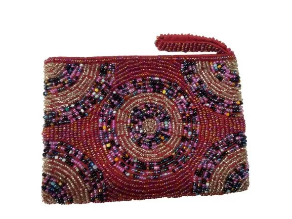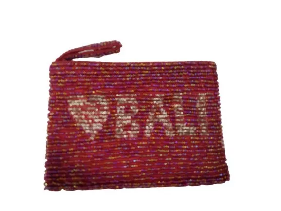 Piros gyöngyös szütyő, pénztárca Bali felirattal