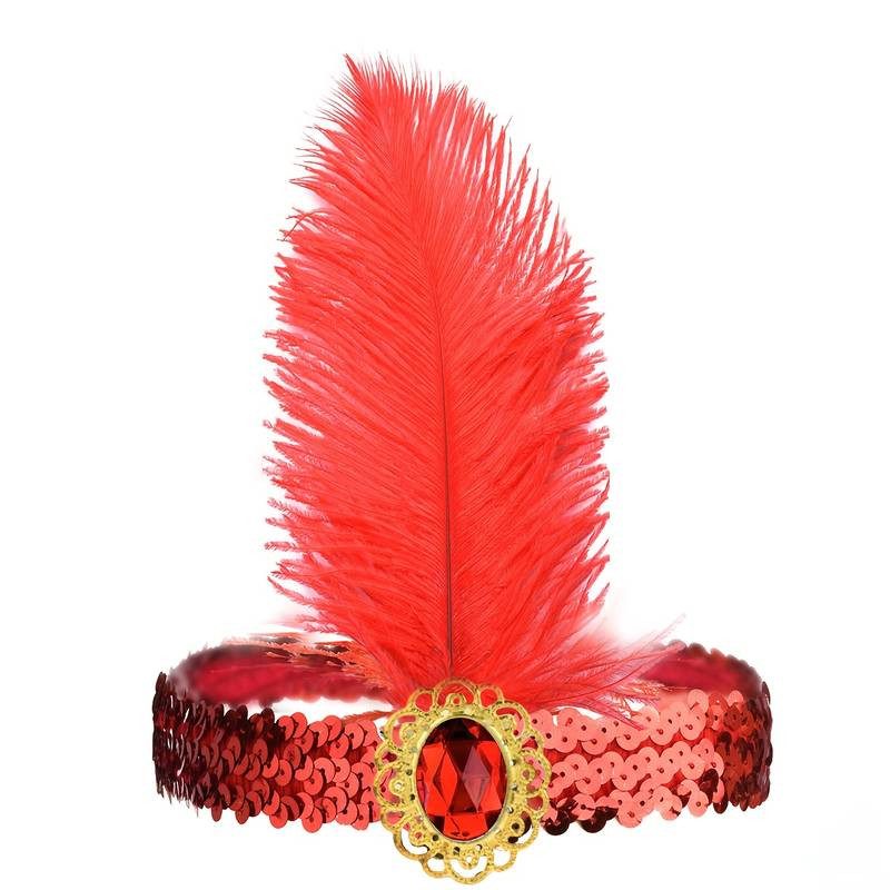 Piros köves tollas fejpánt, fejdísz - Charleston - ÚJ
