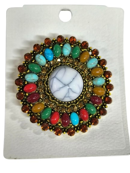 Többszínű mandalás bross, kitűző, fehér közepű, piros szélű - ÚJ
