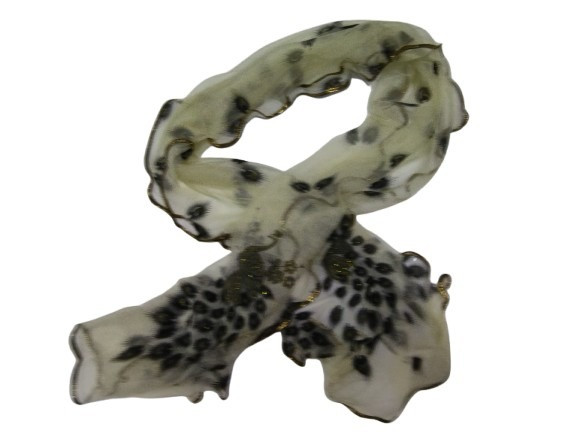 Törtfehér arany szélű pávamintás sál, kendő