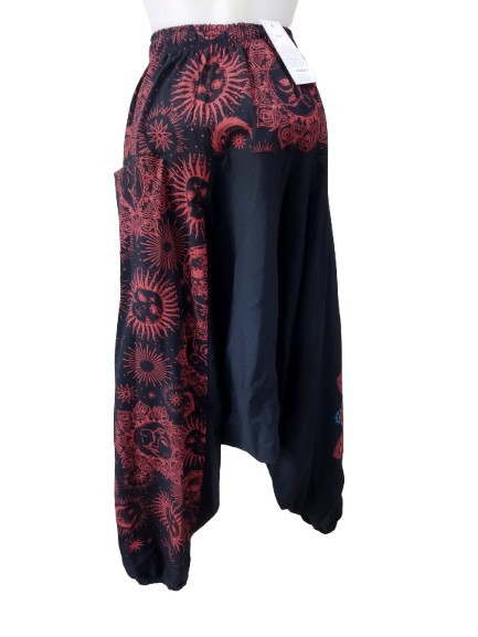Unisex fekete-piros mandalamintás aladdinnadrág, jóganadrág, nepáli nadrág - Nini - ÚJ