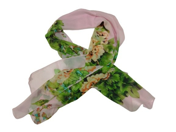 Zöld-rózsaszín virágmintás, sál, kendő