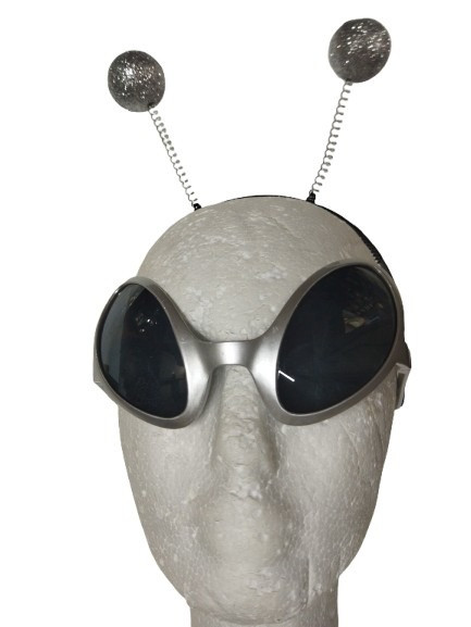 Űrlény, ufó, földönkívüli szett - fejdísz és szemüveg - ezüst - ÚJ