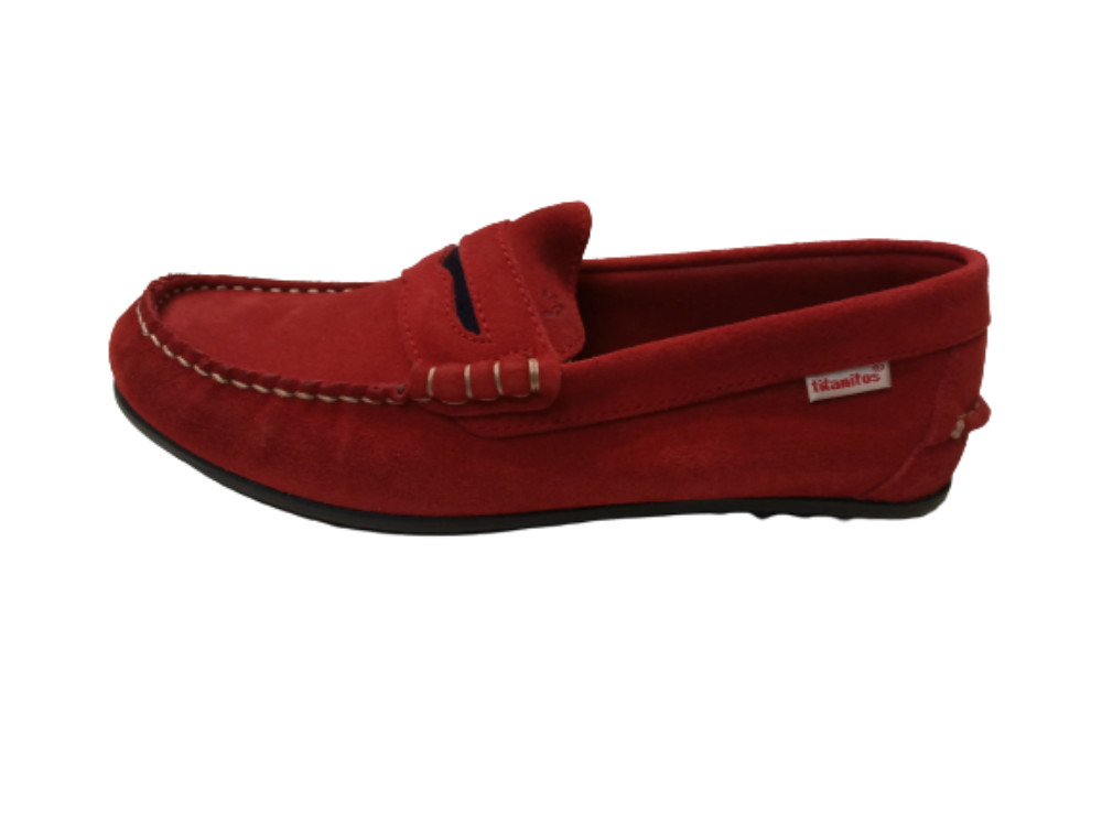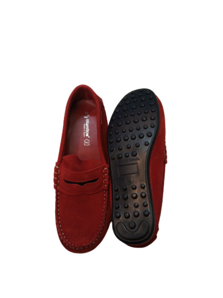 34-es piros mokaszín jellegű velúr bőr cipő - Titanitos - ÚJ