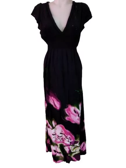 Női L-es fekete virágos flitteres gyönyörű alkalmi ruha - Desigual